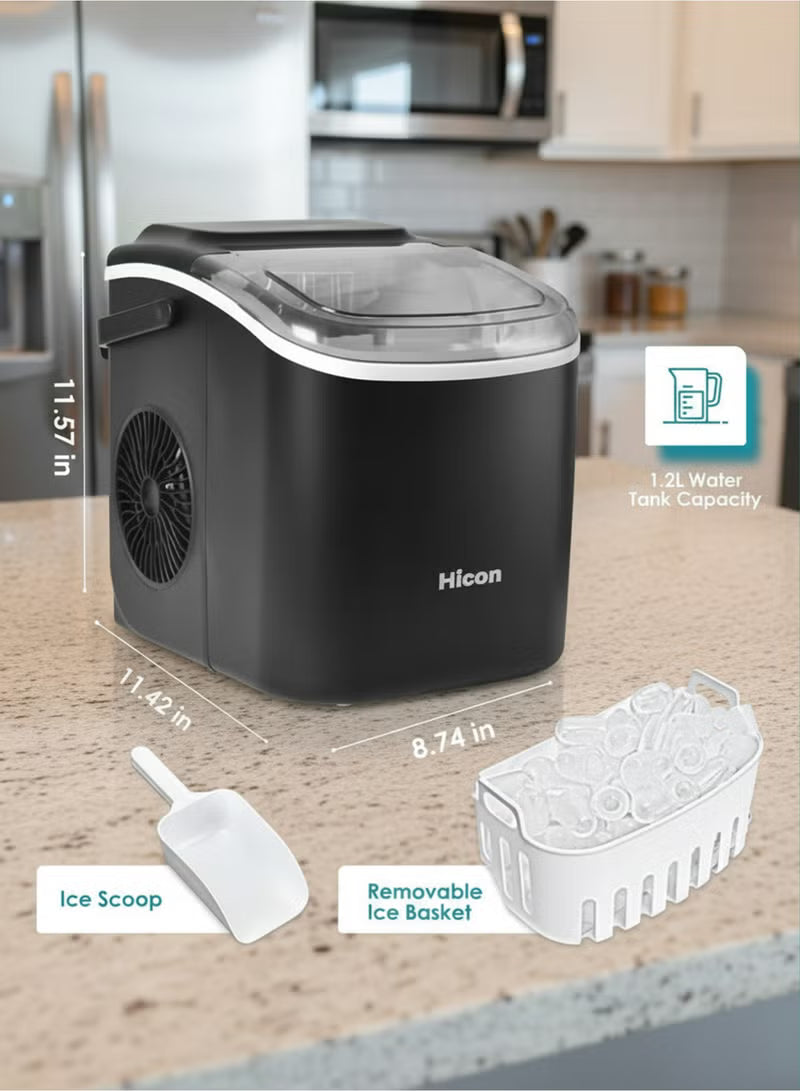 • 6 Mins Ice-Making & Ultra Quieter: Our Hicon ice maker only takes 6mins that will enjoy the first batch of fresh bullet ice. With a 1.2L water tank and powerful compressor, the portable ice maker easily makes maximum ice capacity to 26lbs ice per day and holds up to 1.3lbs ice at a time. Also, our ice maker is not only excellent in refrigeration, but also at less than 45db normal noise, ensuring a comfortable and quiet environment to enjoy ice-making, similar to a working freezer.