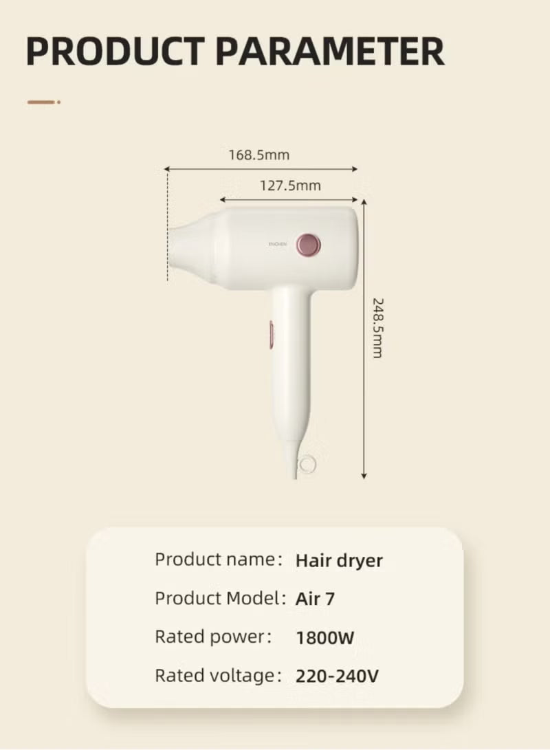 Hair Dryer – Fast Drying, 3 Heat Settings, 1800W Powerful ,Hair Blower Lightwight Safe For Student Dormitory&Home Use-Air 7
