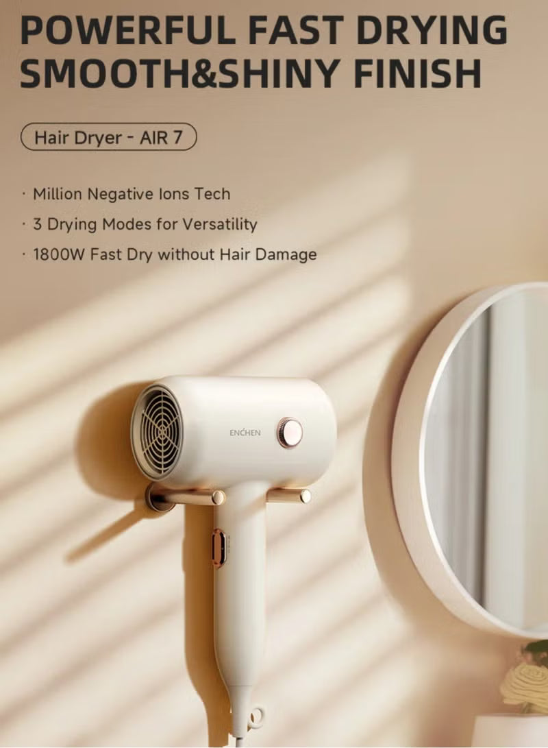 The ENCHEN Air 7 Hair Dryer combines powerful drying performance with modern hair care technology. Featuring a 1800W motor, three heat settings,... Read more