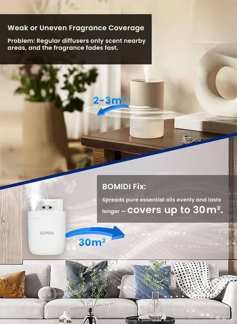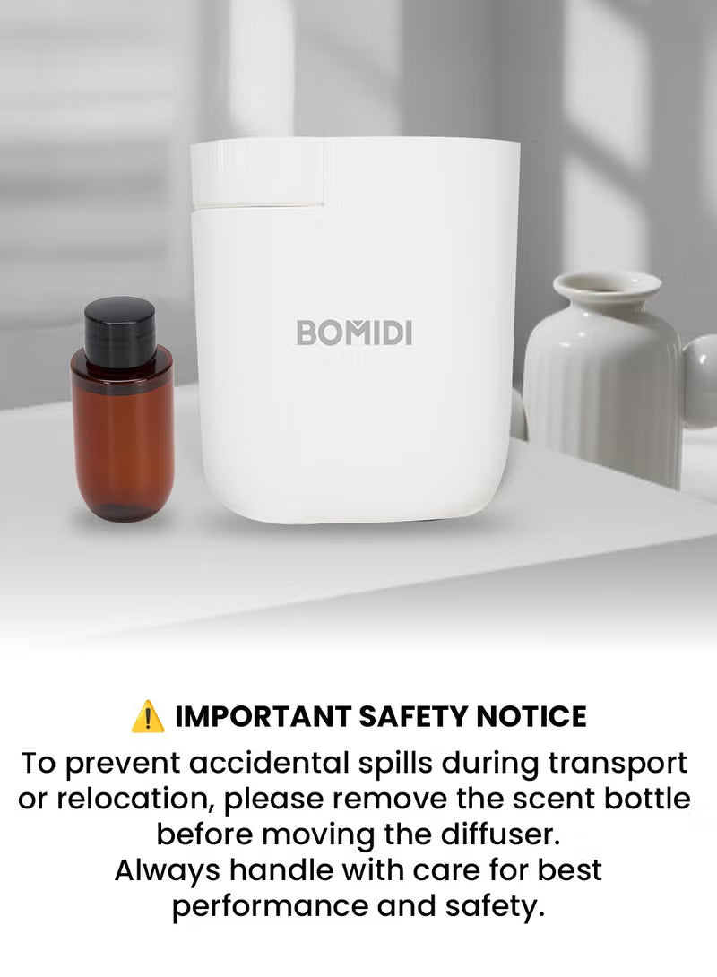 Transform your space with the BOMIDI AD01 Black Waterless Aromatherapy Diffuser. Using advanced Venturi nebulizing technology, it disperses pure essential‑oil mist without water, ensuring no residue or mold buildup. The 60 mL refillable reservoir covers up to 30 m², while three customizable mist cycles let you fine‑tune your scent experience. Control it effortlessly via Bluetooth in the BOMIDI app or directly on the unit. Whisper‑quiet operation (< 41 dB) makes it perfect for home, office, or bedside use. Simply plug into any AC 100–240 V outlet, load your favorite oil, and enjoy hours of uninterrupted, undiluted aroma therapy.