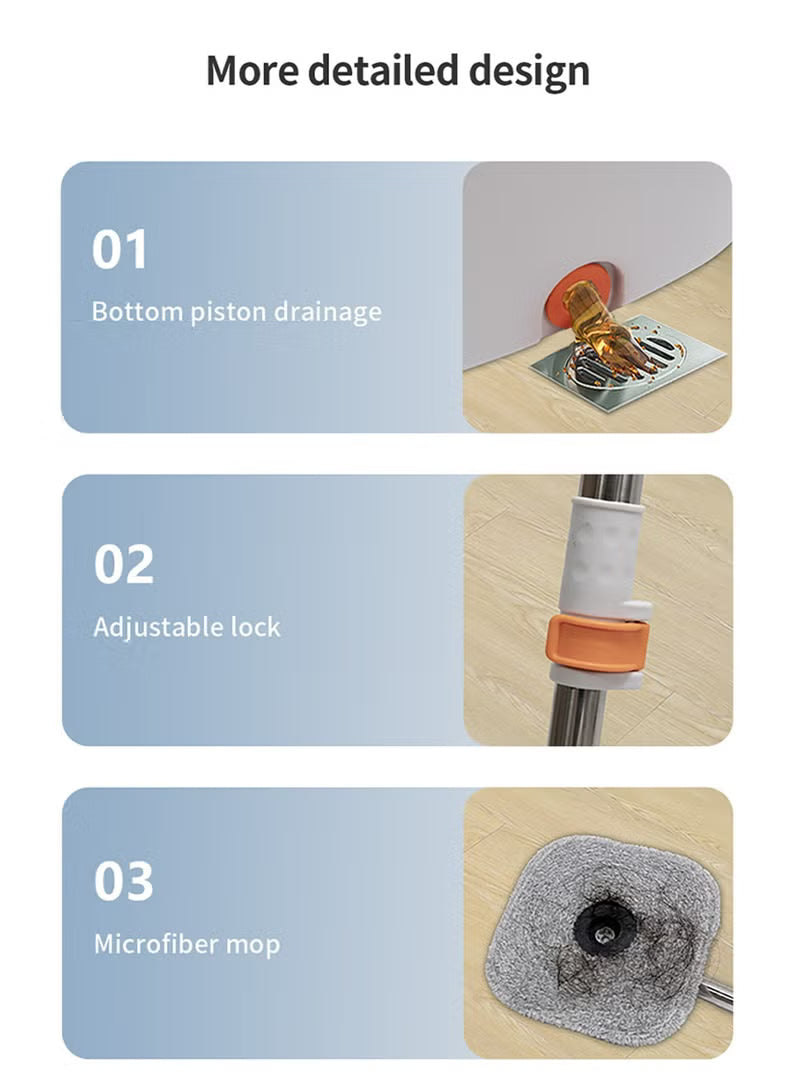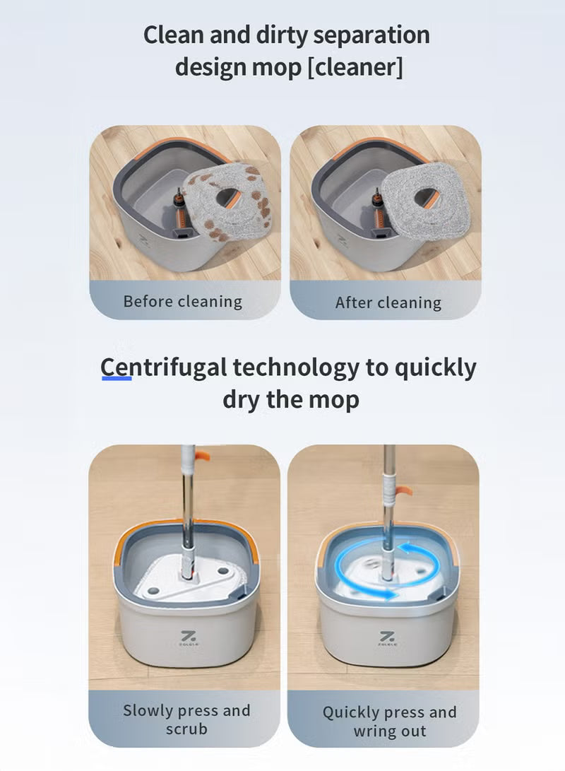 Zolele Spin Mop Bucket Set, 360° Rotaing Mop with Self Separation Clean and Dirty Water System, Easy to Wring Floor,Mop With Detachable Mop Head, Suitable for Different Materials Floor Cleaning M20-Grey