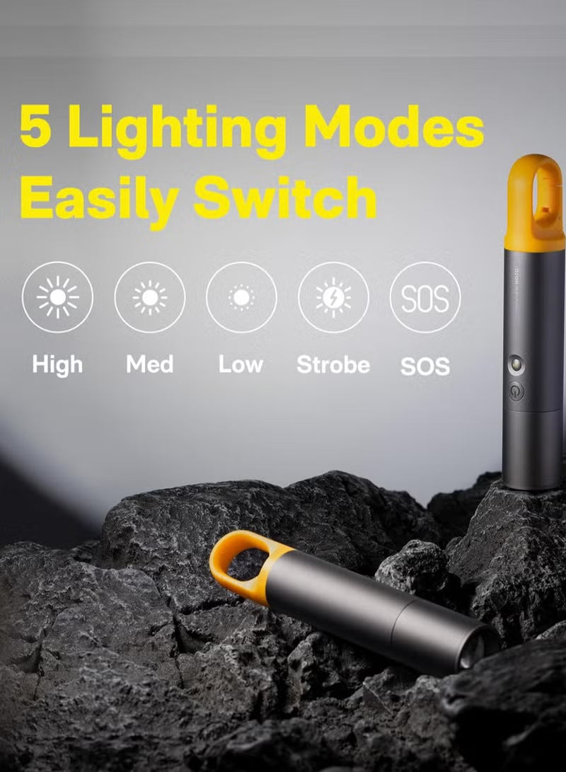 ✅ 5 lighting modes: 3 brightness levels + SOS + Strobe for emergencies