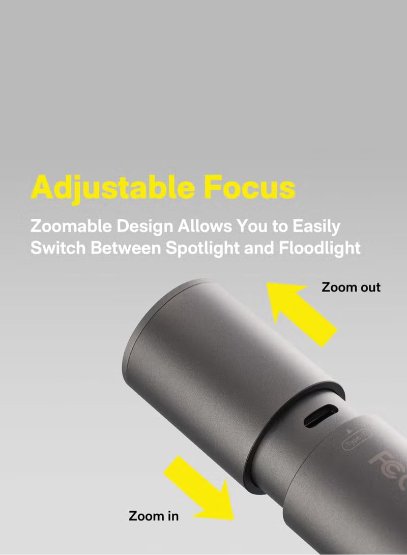 Featuring five lighting modes—low, medium, high, SOS, and strobe—it’s suited for everything from reading in a tent to signaling in emergencies. Its front-end zoom head allows you to focus the beam from wide floodlight to tight spotlight. With a hidden USB-C charging port and a robust 2600mAh battery, you can count on up to 24 hours of usage. Plus, the detachable diffuser transforms your flashlight into a soft-glow lantern.