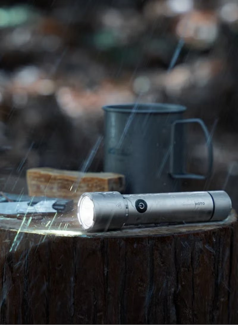 Equipped with three brightness modes—including strobe, dot, and regular flashlight—this versatile light adapts to any situation. Its durable aluminum build and IP68 waterproof rating make it perfect for harsh conditions, while its 0.2-second quick-start ensures you’re never left in the dark. It runs on a high-capacity 3100mAh rechargeable battery and includes space for two emergency CR123A batteries, ensuring you're always powered up.