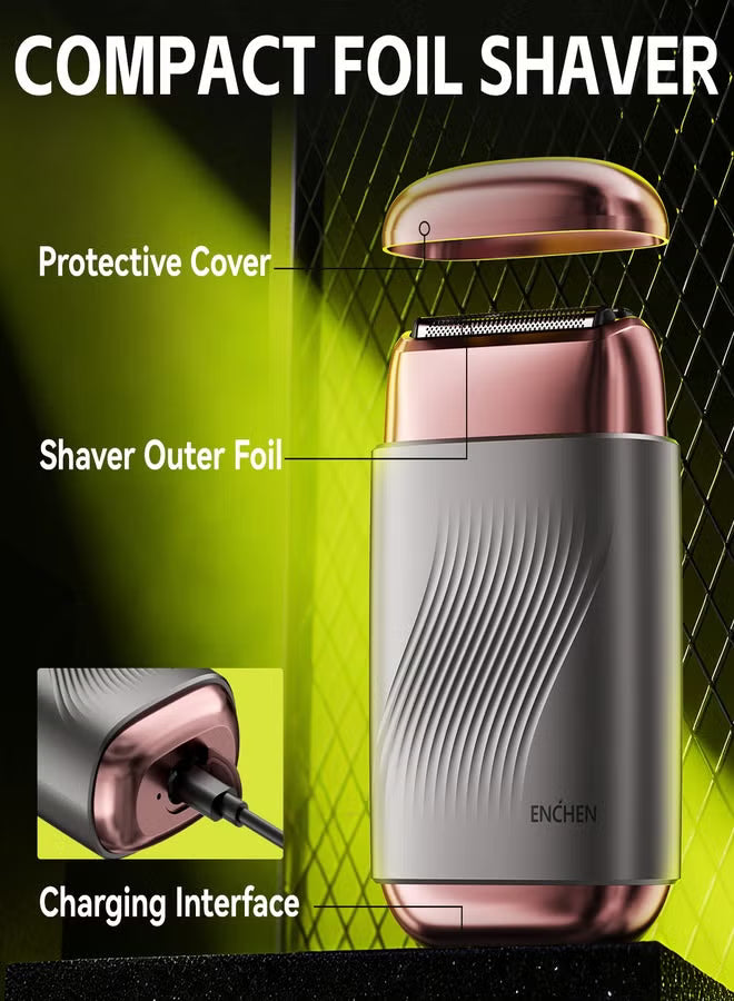 MS006 Mini Compact Foil Shaver 3D Floating Triple-Blade System 6800 RPM/min Type-C Rechargeable Pocket-Size Shaver-Gun Gray