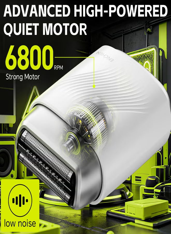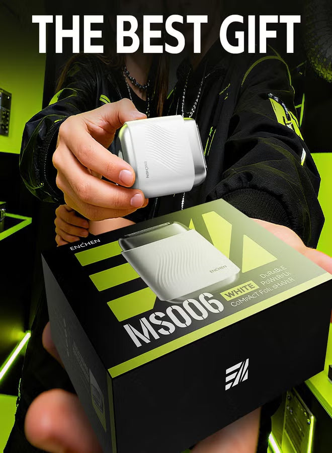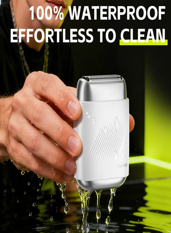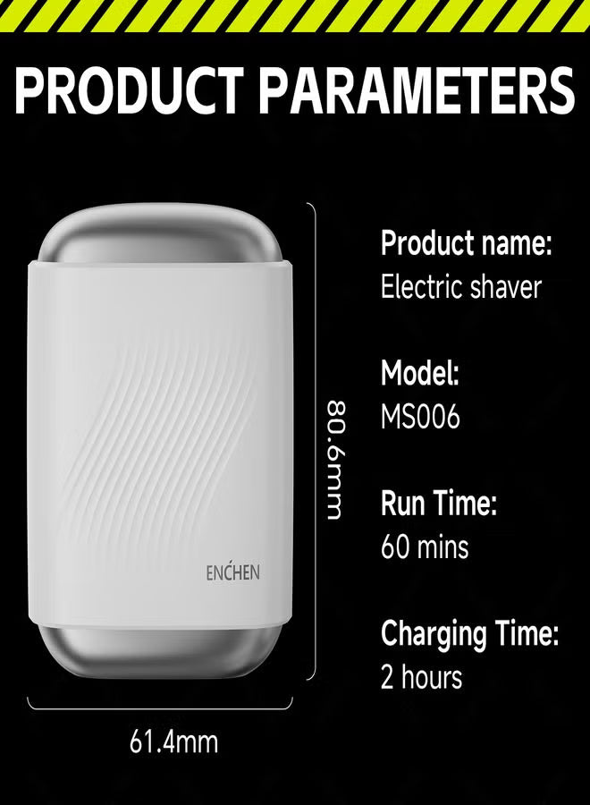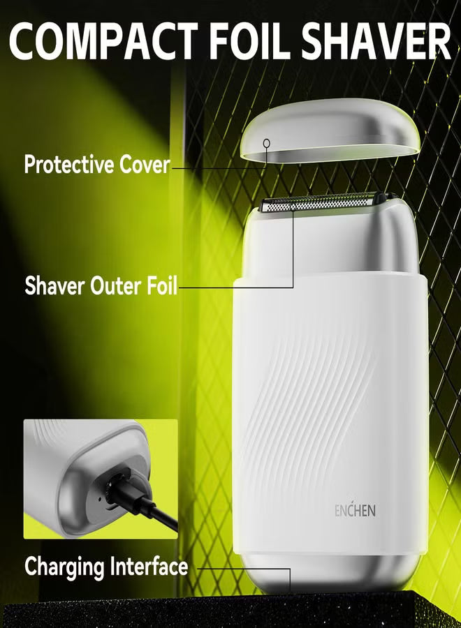 MS006 Mini Compact Foil Shaver 3D Floating Triple-Blade System 6800 RPM/min Type-C Rechargeable Pocket-Size Shaver-White